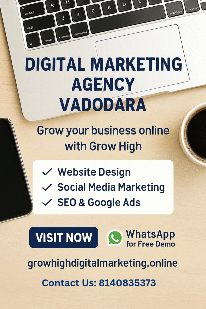 My Blog hello world Blog 2 Byankitchauhan8545@gmail.com July 18, 2025 hello world “Grow High Digital Marketing: વડોદરાની Top 5 Digital Agenciesમાં કેમ છે તમારી સૌથી સારી પસંદગી?” Grow High Digital Marketing વડોદરાની... hello world Blog Byankitchauhan8545@gmail.com July 17, 2025 hello world “ડિજિટલ માર્કેટિંગ શું છે? વ્યવસાય માટે સંપૂર્ણ માર્ગદર્શિકા (2025)” “ડિજિટલ માર્કેટિંગ શું છે અને એ તમારા બિઝનેસ માટે કેમ જરૂરી... Social Media Post Festival Social Media Digital Marketing Instagram Story Grow High Digital Marketing Video